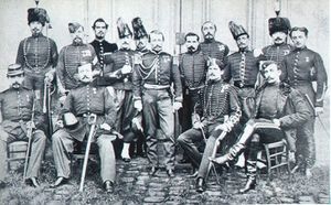 البعثة العسكرية الفرنسية قبل مغادرتها إلى اليابان، في 1866. شارل شانوان واقفاً في الوسط، جول برونيه هو الثاني من اليمين في الصف الأمامي.