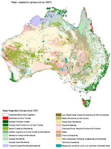 Major vegetation groups in Australia as identified by the National Land and Water Resources Audit's Australian vegetation assessment in 2001.