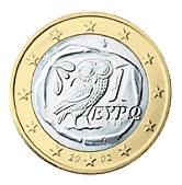 The Euro, currency of the Eurozone since 1999. Greek national obverse.