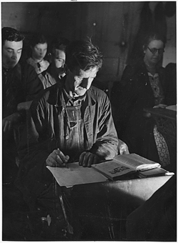 - ادارة تقدم الأعمال (WPA)، 1935: a national labor program for more than 2 million unemployed; created useful construction work for unskilled men; also sewing projects for women and arts projects for unemployed artists, musicians and writers; ended 1943.