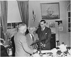 وفي 5 أكتوبر 1946، الرئيس الأمريكي هاري ترومان يحث على السماح بالهجرة المكثفة إلى فلسطين التي كانت تحتلها بريطانيا، وكان له دور في دفع الأمم المتحدة إلى صدور قرار بتقسيم فلسطين إلى دولتين عربية وأخرى إسرائيلية، وأسرع بالاعتراف بدولة إسرائيل عقب إعلان قيامها.