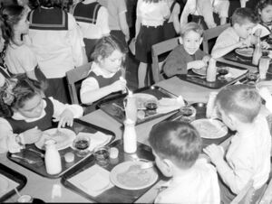 2. ^ أ ب Gordon W. Gunderson (2003). The National School Lunch Program: Background and Development. Nova Publishers. pp. 1–6. ISBN 978-1-59033-639-7.
