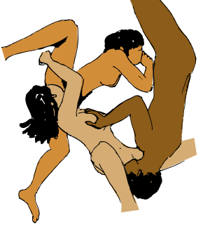 هو أن تجعل المرأة تحت عجزها مخدتين وتستند على يديها إلى الوراء ويعمل الرجل مقابلها كذلك ويولجه إيلاجاً عنيفاً وكل منهما رجلاه مضمومتان إليه