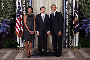 يانوش آدر مع الرئيس الأمريكي باراك أوباما و السيدة الأولى ميشل أوباما في مدينة نيويورك، 2012 (UN 67th General Assembly)