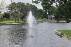 Deering Oaks Park with fountain and castle pavilion is located at the point where Interstate 295 meets State Street, Park Avenue, and Deering Avenue