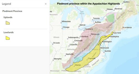 Piedmont (/ˈpiːdmɒnt/ PEED-mont)[1] is a plateau region located in the Eastern United States. It is situated between the Atlantic Plain and the Blue Ridge Mountains, stretching from New York in the north to central Alabama in the south. The Piedmont Province is a physiographic province of the larger Appalachian Highlands physiographic division and consists of the Piedmont Upland, and the Piedmont Lowlands sections.[2]