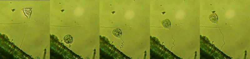 | Movies of Vorticella contracting and extending. Left: Vorticella campanula. Right: Probably Vorticella convallaria at higher magnification. For full resolution click first on image. |