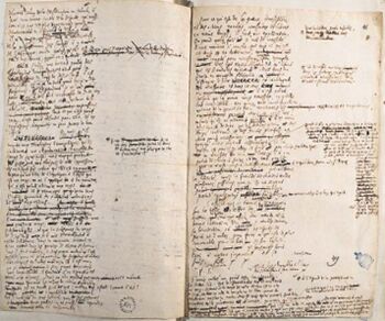 وربما كان من أجل الاجتماع(22) أن ليبنتز كتب، غفلاً من اسمه أغرب الوثائق العديدة التي وجدت بين أوراقه بعد وفاته، وكان عنوانها "منهج لاهوتي"، وفهمت على أنها بيان للمذهب الكاثوليكي يمكن أن تقبله أي بروتستانتي حسن النية. وفي 1819 نشرها ناشر كاثوليكي دليلاً على أن ليبنتز كان قد ارتد سراً، والأرجح أنها كانت محاولة دبلوماسية لتضييق هوة الخلاف الديني بين الفريقين. ولكن كان للناشر عذره في اعتبار الوثيقة كاثوليكية إلى أبعد حد، واتسم مطلعها بالتجرد أو عدم التحيز لأي من المذهبين في إيجاز: