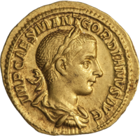 Aureus of Gordian III. Inscription: IMP. CAES. M. ANT. GORDIANVS AVG. |