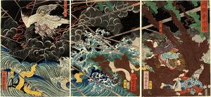 الامبراطور سوتوكو (1119-1164) توفي في سانوكي، في المنفى. وثمة أسطورة أنه تحول إلى شيطان. الصورة بريشة أوتاگاوا يوشيتسويا.