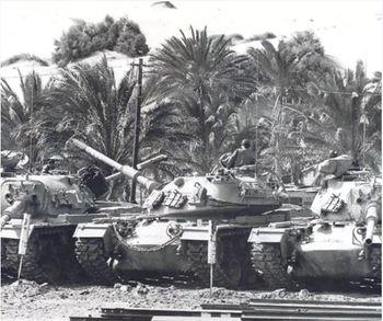 الأول: أحد الأولوية المدرعة يضغط على القوات المصرية من الشرق إلى الغرب، في منطقة المزرعة الصينية Chinese Farm عند الدفرسوار شرق.