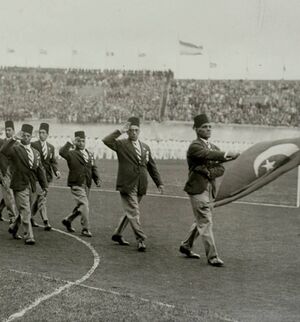 صورة لأعضاء البعثة الرياضية المصرية ضمن حفل إفتتاح دورة الألعاب الأوليمبية في أمستردام بهولندا سنة 1928