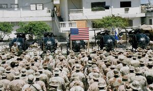 Two weeks later another bomb injured seven more.[17] In response, U.S. President Bill Clinton approved the proposal to deploy a task force composed of elite special forces units, including 400 U.S. Army Rangers and Delta Force operators.[57]