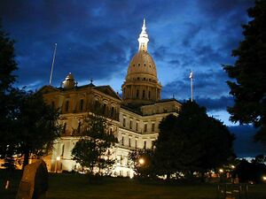 Michigan became a state in 1837, with the State Capitol in Detroit until the winter of 1847 when the state constitution required that the capital be moved from Detroit to a more central and safer location in the interior of the state. Many were concerned about Detroit's proximity to British-controlled Canada, which had captured Detroit in the War of 1812. The United States had recaptured the city in 1813, but these events led to the dire need to have the center of government relocated away from hostile British territory. There was also concern with Detroit's strong influence over Michigan politics, being the largest city in the state as well as the capital city.[7] Unable to publicly reach a consensus because of constant political wrangling, the Michigan House of Representatives privately chose the Township of Lansing out of frustration. When announced, many present openly laughed that such an insignificant settlement was now the capital city of Michigan. Two months later, Governor William L. Greenly signed into law the act of the legislature officially making Lansing Township the state capital.[7]