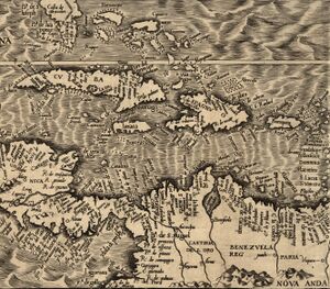 Map from 1562 with Curaçao indicated as Qúracao