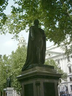 In 1858, Derby formed another minority government upon the resignation of Lord Palmerston following a parliamentary defeat to an opposition motion which, in the context of a failed plot to assassinate Napoleon III of France, charged that "the ministry had admitted they sheltered assassins".[23] Disraeli was again at the Exchequer and Leader of the Commons. Among the notable achievements of this administration was the end of the British East India Company following the Indian Rebellion of 1857, which brought India under direct British control for the first time. Once again the government was short-lived, resigning after only one year, having narrowly lost a vote of no-confidence brought by Lord Hartington on behalf of various Whig and Radical factions which had coalesced at the Willis's Rooms meetings in St James's Street to mark the birth of the Liberal Party.[24] In July 1859, Derby was appointed a Knight of the Garter.[25]