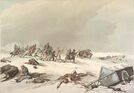واستمرت المأساة طوال مسيرة من بقي على قيد الحياة من الجنود الفرنسيين نحو الغرب، لقد هبطت درجة الحرارة ثانية إلى ما دون درجة التجمّد، لكن كان لهذا ميزة واحدة إذ سمح بالانتقال فوق المستنقعات المتجمدة فقصّر المسافة إلى فيلنا. ولأن الخوف من القوزاق والفلاحين المعادين قلّ، فقد تضاعف عدد الهاربين واختفى النظام.