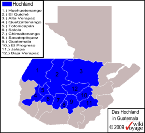 The Guatemalan Highlands is an upland region in southern Guatemala which lies between the Sierra Madre de Chiapas to the south and the Petén lowlands to the north.[1]