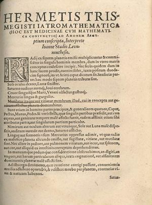 - Online Galleries, History of Science Collections, University of Oklahoma Libraries High resolution images of works by Hermes Trismegistus in .jpg and .tiff format.