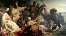 Arabs are first recorded in Palmyra in the late first millennium BC.[20] The soldiers of the sheikh Zabdibel, who aided the Seleucids in the battle of Raphia (217 BC), were described as Arabs; Zabdibel and his men were not actually identified as Palmyrenes in the texts, but the name "Zabdibel" is a Palmyrene name leading to the conclusion that the sheikh hailed from Palmyra.[20] After the Battle of Edessa in 260 CE, the Roman emperor Valerian was taken prisoner. Assuming the side of Rome, the Palmyrenes united under Odaenathus and defeated the Sassanian armies in several battles, even reaching the capital city, Ctesiphon, twice.