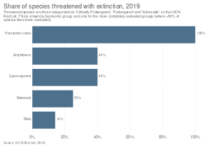 نسبة الأنواع المهددة بالانقراض حتى عام 2019.