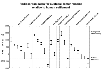 309. ^ Perez, Ventura R.; Godfrey, Laurie R.; Nowak-Kemp, Malgosia; Burney, David A.; Ratsimbazafy, Jonah; Vasey, Natalia (2005-12-01). "Evidence of early butchery of giant lemurs in Madagascar". Journal of Human Evolution. 49 (6): 722–742. Bibcode:2005JHumE..49..722P. doi:10.1016/j.jhevol.2005.08.004. PMID 16225904.