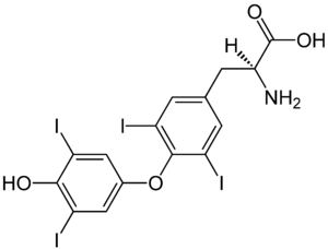 تحتاج النباتات والحيوانات إلى كمية ضئيلة من اليود لنموها. وفي جسم الإنسان تستعمل الغدة الدرقية الموجودة في العنق اليود لإنتاج هورمون الثيروكسين. ويضبط الثيروكسين سرعة الجسم في النمو والتطور الجسدي والعقلي.