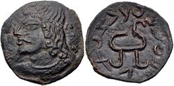 The Kangju were in frequent struggles with the Wusun, during which they in the mid 1st century BCE allied themselves with the northern Xiongnu.[2] The Kangju ruler gave his daughter in marriage to the northern Xiongnu ruler Zhizhi, while the Kangju king married the daughter of the Xiongnu ruler.[20] The Xiongnu and Kangju were initially successful, besieging the Wusun in 42 BCE. The Han however intervened, defeating and killing the northern Xiongnu ruler in at Talas in 36 BCE (Battle of Zhizhi). The Kangju ruler was subsequently forced to send his son as a hostage to the Han court.[2] Nevertheless, the Kangju continued to send embassies to the Han court and pursued an independent policy, which they were able to maintain until the 3rd century CE. Evidence of Kangju independence can be seen in the coinage issued in the 2nd and 3rd centuries CE, during which they issued their own currency which was similar to that of Khwarezm.[2]