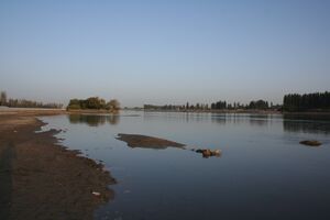 The modern town of Yanqi is situated about 24 كيلومتر (15 mi) west of the shallow Lake Bosten. The lake is about 81 كيلومتر (50 mi) east to west and 48 كيلومتر (30 mi) north to south with a surface area of about 1،000 متر كيلومربع (390 sq mi), making it one of the largest lakes in Xinjiang. It has been noted since Han times for its abundance of fish. The lake is fed by the Kaidu River and the Konqi River[note 1] flows out of it past Korla and across the Taklamakan Desert to Lop Nur. There are numerous other small lakes in the region.