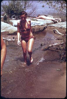 During the 20th century, commercial fishing was prevalent but so was the boom in manufacturing industry around the lake, and often rivers and streams were used as sewers to flush untreated sewage which ended up in the lake.[51] Sometimes poorly constructed sanitary systems meant that when old pipes broke, raw sewage would spill directly into the Cuyahoga River and into the lake.[51] A report in Time magazine in 1969 described the lake as a "gigantic cesspool" since only three of 62 beaches were rated "completely safe for swimming".[51]