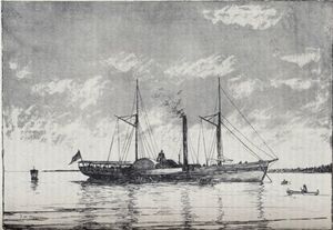 Settlers established commercial fisheries on the north coast of the lake around the 1850s.[33] An important business was fishing.[17] In the pre-Civil War years, railways sprouted everywhere, and around 1852 there were railways circling the lake.[34] Maritime traffic picked up, although the lake was usually closed because of ice from December to early April, and ships had to wait for the ice to clear before proceeding.[35] Since slavery had been abolished in Canada in 1833 but was still legal in southern U.S., a Lake Erie crossing was sometimes required for fugitive slaves seeking freedom: