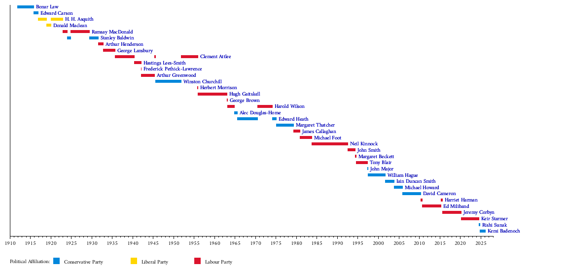 | 13 | William Hague | 4 years, 87 days | 0 | 2001 | 0 | Conservative | 1997–2001 | [25][17] | ||