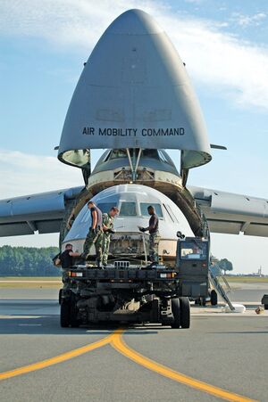 The C-5 has been used for several unusual functions. During the development of the secretive stealth aircraft, the Lockheed F-117 Nighthawk, Galaxies were often used to carry partly disassembled aircraft, leaving no exterior signs as to their cargo.[66] The C-5 remains the largest aircraft to operate in the Antarctic,[67] capable of operating from Williams Field near McMurdo Station.[68] The C-5 Galaxy was a major supply asset in the international coalition operations in 1990–91 against Iraq in the Gulf War.[69][70][71] C-5s have routinely delivered relief aid and humanitarian supplies to areas afflicted with natural disasters or crisis; multiple flights were made over Rwanda in 1994.[72] The C-5 is also used to transport Marine One.[73]