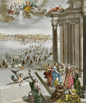 On 27 October 1708, Maria Anna married John V, King of Portugal (1689–1750) to seal the alliance between the two countries against France and Spain during the War of Spanish Succession. Maria Anna reformed the court and its customs to follow the traditions and customs of the traditional Queens of Portugal.[1] Her greatest influence on the court and Portuguese nobility as a whole was the increase of segregation between men and women, as well as between servants and masters. Like John, Maria Anna had an exuberant taste, best shown in her famous parties: she would invite the nobility from all over the country and hold a magnificent festival, often lasting several days.[2]