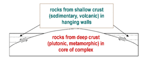Simplified diagram of a symmetric metamorphic core complex