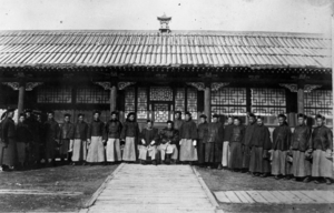 A group of Han Chinese during the Qing dynasty called "Mongol followers" immigrated to Inner Mongolia who worked as servants for Mongols and Mongol princes and married Mongol women. Their descendants continued to marry Mongol women and changed their ethnicity to Mongol as they assimilated into the Mongol people, an example of this were the ancestors of Li Shouxin. They distinguished themselves apart from "true Mongols" 真蒙古.[26][27][28]