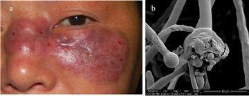 غالبًا ما يتسم المرض بنمو الخوط داخل الأوعية الدموية وحولها ويمكن أن يهدد حياة المصابين بداء السكري أو المصابين بضعف المناعة الشديد.