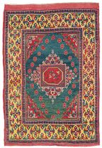 The general design of the Ghirlandaio type, as in the 1486 painting, is related to Holbein Type 1. It is defined by one or two central medallions of diamond shape, consisting of an octagon within a square, from whose sides triangular, curvilinear patterns arise. Carpets with this medallion have been woven in the Western Anatolian region of Çanakkale since the 16th century.[53] A carpet fragment with a Ghirlandaio medallion was found in the Divriği Great Mosque, and dated to the 16th century. Carpets with similar medallions were dated to the 17th,[54][55] 18th[56] and 19th[57][58] century, respectively, and are still woven in the Çanakkale region today.