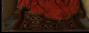 - ^ King & Sylvester, pp. 14, 26, 57-58. Campbell, p. 189.National Gallery zoomable image Archived 2009-05-07 at the Wayback Machine. There is a different type of carpet hung from the Virgin's house, at top center-right.