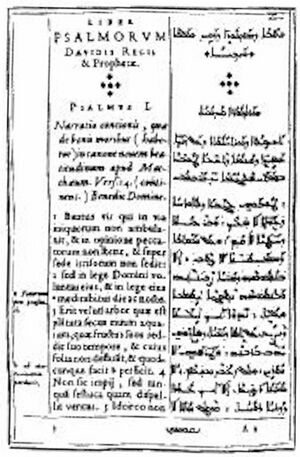 While in Rome he set up a publishing house, the Typographia Savariana, through which he printed a Latin-Arab bilingual edition of a catechism of Cardinal Bellarmino in 1613, as well as in 1614 an Arabic version of the Book of Psalms.[14][15] For the editorial work and the translations, Brèves used the services of two Lebanese Maronite priests, former students of the Maronite College, Gabriel Sionita (Jibrā'īl aṣ-Ṣahyūnī) and Victor Scialac (Naṣrallāh Shalaq al-'Āqūrī).[15]