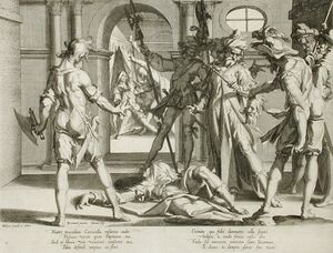 Sharing in the governorship of the Roman Empire with Geta proved unsatisfactory for Caracalla, who decided at some time to usurp his brother. Papinian, trying to keep peace between the brothers, only proved to encourage the hatred of Caracalla, who ordered Papinian to be beheaded (Spartianus, Caracalla),[3][4][6] and his body dragged through the streets of Rome.[9] His death followed the 212 CE fratricide of Geta, amongst the general slaughter of his friends and those perceived associated with him, according to one source estimated as 20,000 persons.[8]