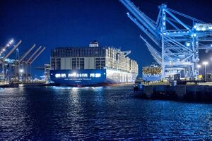 In 2011, no American port could handle ships of the PS-class Emma Mærsk and the future Maersk Triple E class size,[17][18] the latter of which needs cranes reaching 23 rows.[19] In 2012, the port and the U.S. Army Corps of Engineers deepened the port's main navigational channel to 53 أقدام (16 m), which is deep enough to accommodate the draft of the world's biggest container ships.[20][21] However, Maersk had no plans in 2014 to bring those ships to America.[22] In 2024 the port received 3 cranes capable of servicing ships up to 18,000 TEU.[23]