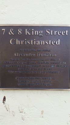 Future Founding Father Alexander Hamilton and his brother lived with their mother Rachel Faucette on Saint Croix, after she returned to the island in 1765. Their residence was in the upper floor of a house at 34 Company Street, while Rachel used the lower floor as a shop selling food items. Within two years, however, Hamilton lost his father, James Hamilton, by abandonment, and his mother to death. Official documents from the island, a 1768 probate court testimony from his uncle, established Alexander's age at 13. By 1769, Hamilton's cousin, aunt, uncle, and grandmother had also died. His brother James became an apprentice carpenter, and Alexander Hamilton became the ward of Thomas Stevens, a merchant on King Street. Hamilton was soon clerking in the export-import business of Beekman and Cruger, at the intersection of King and King's Cross Streets. In 1772, local businessmen funded Hamilton's further education in New York.[11]