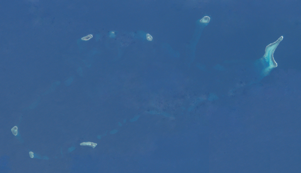 من اليمين إلى اليسار: الكاية الرملية، Zhongzhou/Ban Than Reef , [جزيرة تاي‌پينگ