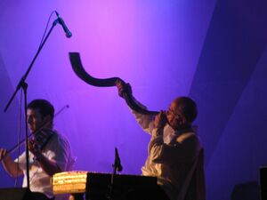 In pop music, the shofar is used by the Israeli Oriental metal band Salem in their adaptation of "Al Taster" (Psalm 27). The late trumpeter Lester Bowie played a shofar with the Art Ensemble of Chicago. In the film version of the musical Godspell, the first act opens with cast member David Haskell blowing the shofar. In his performances, Israeli composer and singer Shlomo Gronich uses the shofar to produce a wide range of notes.[37] Since 1988, Rome-based American composer Alvin Curran's project Shofar features the shofar as a virtuoso solo instrument and in combination with sets of natural and electronic sounds. Madonna used a shofar played by Yitzhak Sinwani on the Confessions Tour and the album Confessions on a Dance Floor for the song "Isaac", based on Im Nin'alu. In 2003, The Howard Stern Show featured a contest called "Blow the Shofar", which asked callers to correctly identify popular songs played on the shofar. Additionally, Stern Show writer Benjy Bronk has repeatedly used a shofar in his antics.[38] The shofar is sometimes used in Western classical music. Edward Elgar's oratorio The Apostles includes the sound of a shofar, although other instruments, such as the flugelhorn, are usually used instead.