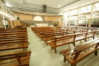 The Iglesia Los Olivos church. P.A. speakers are mounted on the ceiling to reproduce the speech of the priest.
