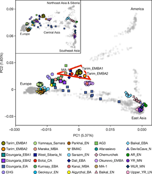 Combining genomic and proteomic evidence, researchers revealed that these earliest residents in the Tarim Basin carried genetic ancestry inherited from local Upper Palaeolithic hunter-gatherers, carried no steppe-related ancestry, but consumed milk products, indicating communications of persistence practices independent from genetic exchange.