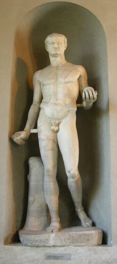 Practice of the imperial cult was revived by Titus, but apparently, it met with some difficulty since Vespasian was not deified until six months after his death.[39] To honour and glorify the Flavian dynasty further, foundations were laid for what would later become the Temple of Vespasian and Titus, which was finished by Domitian.[40][41]