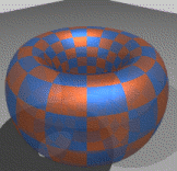 where R and P are positive constants determining the aspect ratio. It is diffeomorphic to a regular torus but not isometric. It can not be analytically embedded (smooth of class Ck, 2 ≤ k ≤ ∞) into Euclidean 3-space. Mapping it into 3-space requires one to stretch it, in which case it looks like a regular torus. For example, in the following map: