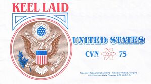 A cover for the keel laying of CVN-75 showing her keel was laid as يوإس‌إس United States